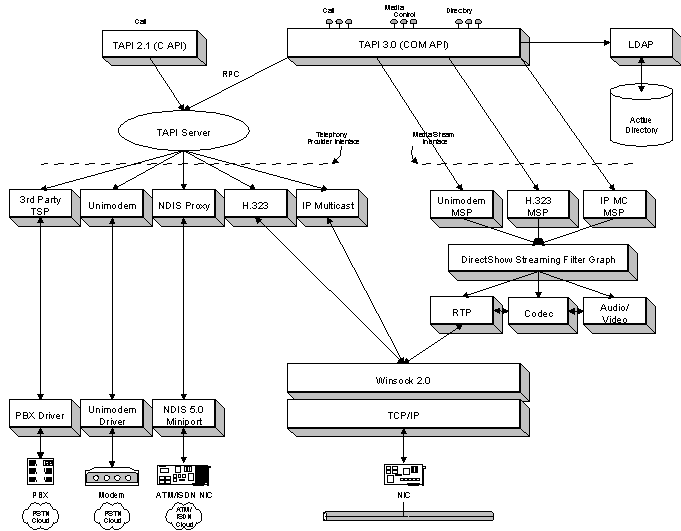 TAPI3.0 COM API、TAPI Server、Telephony Service Providers、Media Stream