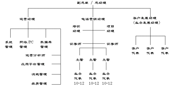 在呼叫中心的組織結(jié)構(gòu)及職能分工上,外包型呼叫中心與企業(yè)自建型呼叫中心有很多共同點(diǎn),它們間主要的區(qū)別在于外包型呼叫中心分工更細(xì),而且有很多專門人員,而企業(yè)自建型呼叫中主的很多職能是由一人兼任或借助其它部門的支持和服務(wù)。從一個(gè)典型的外包型呼叫中心的組織結(jié)構(gòu)來看,通常會(huì)設(shè)置如下一些組織單位: