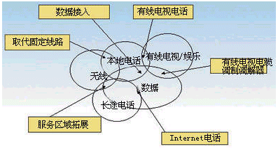 數(shù)據(jù)服務(wù)同本地電話服務(wù)的融合,是不來最重要的融合趨勢之一,其主要體現(xiàn)在通過本地電話可以解決數(shù)據(jù)業(yè)務(wù)的接入問題,可以提供窄帶或?qū)拵У慕尤肽芰。同時(shí),可以為Internet服務(wù),如電子郵件服務(wù)同電話話音服務(wù)結(jié)合起來創(chuàng)造條件。一種未來的發(fā)展方向就是利用電話來接收電子郵件同時(shí)可以用電子郵件的方式閱讀語言信箱中的留言!奥犽娮余]件,看語言信箱”是對這種融合服務(wù)的最好描述。而數(shù)據(jù)業(yè)務(wù)同長途電話業(yè)務(wù)的融合集中于通過VoIP技術(shù)提供長途電話服務(wù),競爭收入最大的電信市場。數(shù)據(jù)服務(wù)同有線電視娛樂服務(wù)的融合主要體現(xiàn)在以Cable Modem做為數(shù)據(jù)接入手段和視頻點(diǎn)播這樣的娛樂服務(wù)。通過Cable Modem,有線電視網(wǎng)也可以提供本地電話和長途電話接入業(yè)務(wù),象AT&T和TCI 及MediaOne 正在進(jìn)行的電話業(yè)務(wù)實(shí)驗(yàn)。而寬帶的數(shù)據(jù)接入則為數(shù)據(jù)服務(wù)的寬帶化提供了條件。