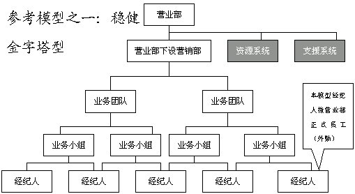 此五種模式建立在營(yíng)業(yè)部基礎(chǔ)上,在券商總部,建議設(shè)立垂直的業(yè)務(wù)管理機(jī)構(gòu),即經(jīng)紀(jì)業(yè)務(wù)總部實(shí)行事業(yè)部制,下設(shè)分工專業(yè)的市場(chǎng)營(yíng)銷部、客戶服務(wù)部、經(jīng)紀(jì)人訓(xùn)練部和綜合管理部等。