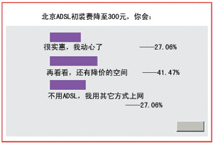 2002年12月,中國(guó)網(wǎng)通北京通信公司發(fā)起了一次降價(jià)活動(dòng),先是將原定今年12月20日到期的512k ADSL上網(wǎng)費(fèi)的半價(jià)優(yōu)惠向后延續(xù)半年期限,緊接著,ADSL初裝費(fèi)從最初的1300元降至300元,降幅達(dá)千元,動(dòng)作之大、降幅之高,令業(yè)界嘩然。不難發(fā)現(xiàn),DSL不僅要延續(xù)原有的市場(chǎng)分額,還要搶占Cable Modem與以太網(wǎng)的半壁江山|