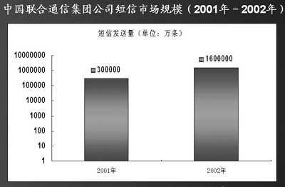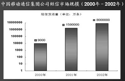 信息產(chǎn)業(yè)部預(yù)測,2003年我國手機(jī)用戶將增加5000多萬,手機(jī)用戶短信普及率有可能從2002年的40%增加到60%。按照這種預(yù)測,2003年,全國短信發(fā)送量將達(dá)到2000億條。