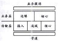 業(yè)務(wù)層的基本功能是在由傳送層提供的“電路”中把負(fù)荷進(jìn)行“整形”并進(jìn)行信息的交換,其目標(biāo)是提升每一個(gè)比特的價(jià)值。業(yè)務(wù)層被橫切為邊緣和核心兩大部分,界線(xiàn)是10萬(wàn)分組/s。在業(yè)務(wù)層,數(shù)據(jù)分組被單獨(dú)處理或者作為“流”(與特定用戶(hù)或應(yīng)用相關(guān)的分組串)來(lái)處理,老的技術(shù)包括幀中繼和ATM,新的技術(shù)MPLS有可能成為ATM的替代技術(shù)。