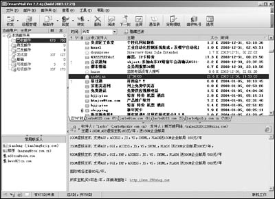 用戶每次發(fā)信,Dreammail都會(huì)智能的將收信人的地址放在位于軟件左下角的“常用聯(lián)系人”窗口里,下次再給這位聯(lián)系人發(fā)E-mail,直接在“常用聯(lián)系人”窗口找到他的地址,雙擊即可進(jìn)行新郵件的編輯。