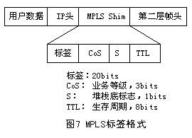 標(biāo)簽的格式取決于分組封裝所在的介質(zhì)。例如,ATM封裝的分組(信元)采用VPI和/或VCI數(shù)值作為標(biāo)簽,而幀中繼PDU采用DLCI作為標(biāo)簽。對于那些沒有內(nèi)在標(biāo)簽結(jié)構(gòu)的介質(zhì)封裝,則采用一個特殊的數(shù)值填充。圖7給出4字節(jié)填充標(biāo)簽的格式,它包含一個20bits的標(biāo)簽值、一個3bits的CoS值、一個1bit的堆棧標(biāo)識符和一個8bits的TTL值。此外.如果填充值被插入到一個PPP或以太網(wǎng)幀中,包含在各幀頭中的一個協(xié)議ID(或以太網(wǎng)類型)表示一個幀或者一個