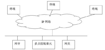 基于H.323的軟件視頻會(huì)議系統(tǒng)由相應(yīng)的協(xié)議族提供支持,使得這樣的系統(tǒng)能夠有很強(qiáng)的適應(yīng)性、兼容性。H.323建議的多媒體會(huì)議系統(tǒng)不是基于客戶服務(wù)器結(jié)構(gòu),而是基于傳統(tǒng)的電話呼叫網(wǎng)絡(luò)模式。H.323為基于網(wǎng)絡(luò)的通信協(xié)議定義了4個(gè)主要的組件:終端(Terminal)、網(wǎng)關(guān)(Gateway)、網(wǎng)守(Gatekeeper)和多點(diǎn)控制單元(MCU);就?fù)浣Y(jié)構(gòu)結(jié)構(gòu)如圖:
