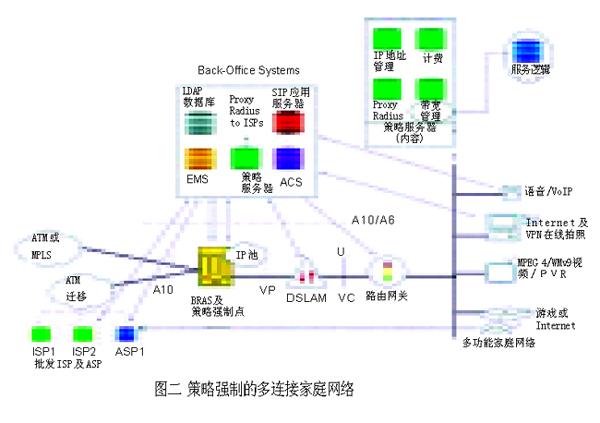 運(yùn)營商基礎(chǔ)網(wǎng)絡(luò)形形色色的演化,歸根結(jié)底都圍繞著運(yùn)營商最關(guān)心的利潤增長問題。隨著全球投入使用的DSL線路數(shù)目迅速接近1億,利用現(xiàn)有的DSL網(wǎng)絡(luò)提供更加豐富的高端服務(wù),成為業(yè)界共同矚目的焦點(diǎn)。采用QoS和可靠的端對(duì)端策略強(qiáng)制 (policy enforcement) 技術(shù)是目前許多應(yīng)用軟件的主要特征。如何把這些特性應(yīng)用到DSL網(wǎng)絡(luò)上呢?