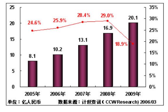 計世資訊(CCW Research)預計:2006年中國城市應急聯動系統(tǒng)IT投資將保持25.9%的增長率,投資規(guī)模將達到10.2億元;由于"十一五"規(guī)劃的實施,以及數字奧運進入關鍵建設階段,預計在2007年,中國城市應急聯動系統(tǒng)增長率達到28.4%,2008年增長率達到29.0%;到2009年中國城市應急聯動系統(tǒng)將進入穩(wěn)定增長階段,IT投入將達到20.1億元。