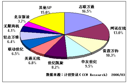 Research)認(rèn)為,隨著IVR市場管理的日益規(guī)范,各中小SP打檫邊球牟利的難度將越發(fā)困難,大型SP憑借品牌、資金、門戶的優(yōu)勢,對市場的影響力會越來越強,F(xiàn)有SP的集中程度將逐漸加大。