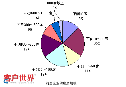 那么和剛才雜志社調(diào)查的結(jié)果是一樣的。這個數(shù)字又是政府方面調(diào)查的結(jié)果,他們調(diào)查的很細(xì),對很小規(guī)模的,比如說1-4人的呼叫中心都進行了調(diào)查,并且看到這種小規(guī)模的呼叫中心還占有很大的比例。可以看到,10人以下的呼叫中心可能在這個結(jié)果里面占了基本上高于50%,所以可能得到一個結(jié)論,就是在日本小型的呼叫中心非常多。