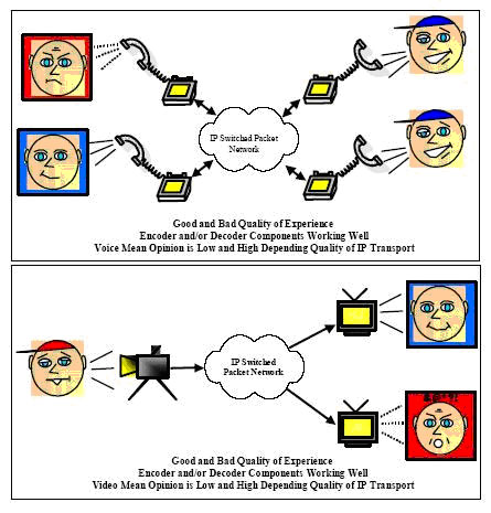 自然地,人們會(huì)向到將MOS或其它基于判斷的分值測(cè)量技術(shù)應(yīng)用于IP業(yè)務(wù)的質(zhì)量體驗(yàn)測(cè)量。對(duì)于IP業(yè)務(wù),業(yè)務(wù)提供商的控制力是有限的,攜帶語(yǔ)音和視頻信息的數(shù)據(jù)包進(jìn)入IP網(wǎng)絡(luò)后,IP業(yè)務(wù)提供商能做的僅僅丟棄數(shù)據(jù)包、延遲數(shù)據(jù)包或者將數(shù)據(jù)包重新排序。