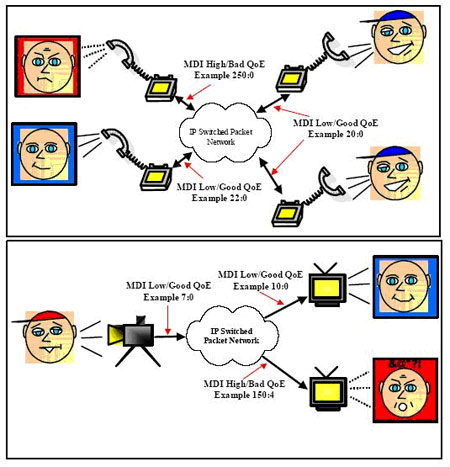 factor,都能夠在MDI定量和實(shí)時(shí)獲得的抖動(dòng)和丟包信息基礎(chǔ)上推算出來(lái)。網(wǎng)絡(luò)的入口、出口以及重要的路由器都可以設(shè)置MDI監(jiān)控,采集的信息被送到網(wǎng)絡(luò)監(jiān)管中心,提醒業(yè)務(wù)提供商語(yǔ)音和視頻業(yè)務(wù)的動(dòng)態(tài)質(zhì)量,設(shè)置能預(yù)測(cè)MDI狀況。