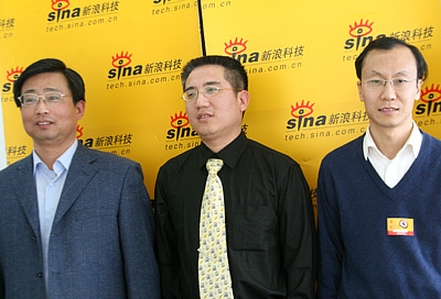 信產(chǎn)部電信研究院專(zhuān)家作客新浪科技,左起分別為陳育平、續(xù)合元和何寶宏。