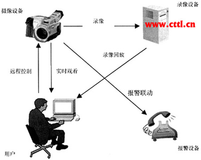 視頻監(jiān)控的基本業(yè)務(wù)功能是提供實時監(jiān)視的手段,并對被監(jiān)視的畫面進(jìn)行錄像存儲,以便事后回放。在此基礎(chǔ)上,高級的視頻監(jiān)控系統(tǒng)可以對監(jiān)控裝置進(jìn)行遠(yuǎn)程控制,并能接收報警信號,進(jìn)行報警觸發(fā)與聯(lián)動。業(yè)務(wù)功能如圖1所示。