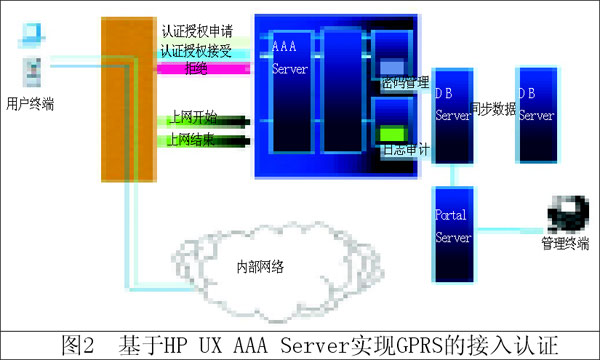目前有很多Radius軟件可以實(shí)現(xiàn)這個功能。如: 基于HP UX AAA Server實(shí)現(xiàn)GPRS接入認(rèn)證的邏輯結(jié)構(gòu)如圖2。