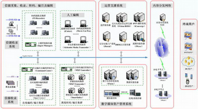 100路衛(wèi)星電視節(jié)目自動(dòng)收錄及編目,經(jīng)由流媒體節(jié)目剪輯、拆條;然后通過(guò)CDN提供ISOMPEG4(IPSetTop Box接收) 和Windows