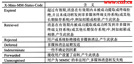 在網(wǎng)間業(yè)務互通中,遞送報告的狀態(tài)非常重要,因為不同運營商間的結算要依靠遞送報告的狀態(tài)。在3GPP的協(xié)議規(guī)范中,沒有對遞送報告的狀態(tài)含義做詳細的規(guī)定:根據(jù)各個廠家開發(fā)設備的情況,可擴展相應的規(guī)定,具體的狀態(tài)含義參見表1。