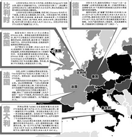 歐洲IMS調(diào)研公司近日也預(yù)測,在今后的5年內(nèi),西歐將成為全球IPTV用戶最多的地區(qū),每10戶付費(fèi)電視用戶中,便有1戶選擇IPTV。目前,法國、德國、意大利等國的IPTV市場發(fā)展態(tài)勢良好,此外,奧地利、西班牙、瑞士等國的IPTV業(yè)務(wù)也將陸續(xù)趕上。