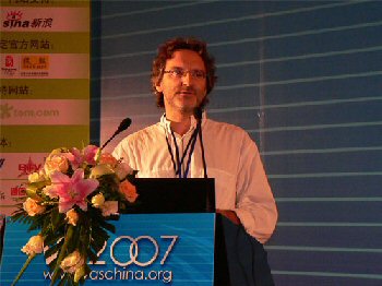 下圖為中國(guó)-歐盟信息社會(huì)項(xiàng)目組法學(xué)專家托馬斯·哈特博士談歐洲監(jiān)管經(jīng)驗(yàn)。
