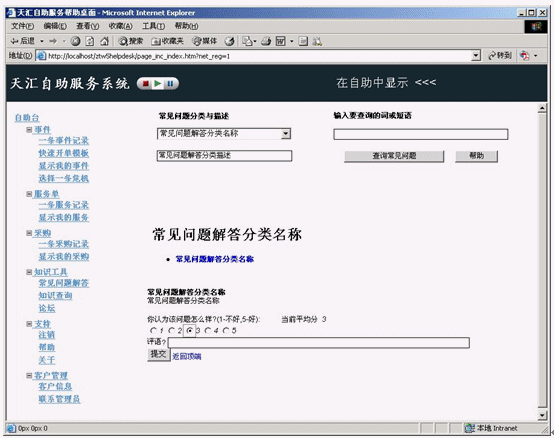 但是,隨著組織轉(zhuǎn)向自助服務(wù),對復(fù)雜維護過程的需要將隨之出現(xiàn)。如果要采用自助服務(wù),必須從一開始就做得很好。上圖為人性化的天匯幫助臺系統(tǒng)的自助服務(wù)功能界面設(shè)計。