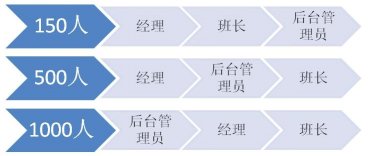 當(dāng)員工人數(shù)到達500人的時候,班長往往有30位左右。很多經(jīng)理已經(jīng)不能夠?qū)γ课话嚅L有足夠的了解,更不要說去認(rèn)識大部分員工。這個時候,經(jīng)理對班長的比例過寬,需要強化后臺管理員的角色。比如排班、績效、質(zhì)量管理(而不僅是評估)、信息分析(數(shù)據(jù)和報告)、行政、培訓(xùn)等工作中,這些管理輔助角色都在逐漸強化。而每一個后臺管理者可能成了經(jīng)理的直接下屬,他們起草的流程和制度,來由經(jīng)理決策。某種程度上說,他們比班長的影響力更大,因為班長還是影響著12-20人。有時候后臺管理員也決定了班長的時間精力分配,那是班長最寶貴的資源。那么誰是管理者呢?首先是經(jīng)理,其次是后臺管理員,最后才是班長。