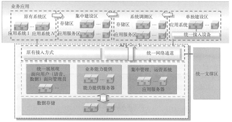 。4)應(yīng)用能力提供區(qū):統(tǒng)一建設(shè)業(yè)務(wù)應(yīng)用實(shí)現(xiàn)的基礎(chǔ)通道系統(tǒng)(包括業(yè)務(wù)能力提供系統(tǒng)、業(yè)務(wù)能力接口網(wǎng)關(guān)),并提供統(tǒng)一接口以實(shí)現(xiàn)業(yè)務(wù)應(yīng)用的靈活調(diào)用。