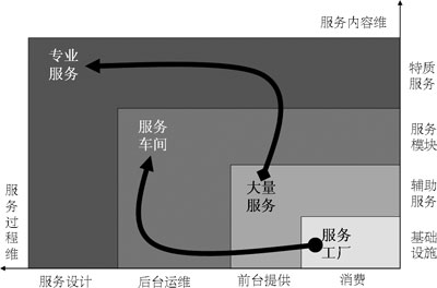 本質(zhì)上講,電信服務(wù)產(chǎn)品的四類服務(wù)都是在此二維機(jī)理的作用下生成的,服務(wù)的內(nèi)容映射著企業(yè)的有形資本資源和人力資本資源,服務(wù)的過(guò)程映射著企業(yè)的組織資本資源,從一種服務(wù)向另一種服務(wù)躍遷,不僅僅是服務(wù)過(guò)程和服務(wù)內(nèi)容的重新整合,更重要的是需要彌補(bǔ)相應(yīng)的資源,才能達(dá)到服務(wù)生成的結(jié)果,否則,躍遷就不會(huì)成功。