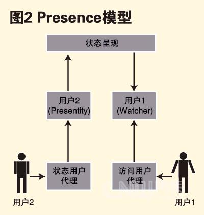 Presence用以傳達用戶狀態(tài)以及用戶通過一組設(shè)備進行通信的能力,如:聯(lián)機、忙碌、離開、脫機等狀態(tài)。這些狀態(tài)信息反映出與該用戶與其他用戶實現(xiàn)通信的可能性。