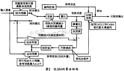 H.264視頻壓縮算法采用與H.263和MPEG-4類似的、基于塊的混和編碼方法,它采用幀內(nèi)編碼(Intra)和幀間編碼(Inter)兩種編碼模式。與以往的編碼標準相比,為了提高編碼效率、壓縮比和圖像質(zhì)量,H.264采用了以下全新的編碼技術(shù):
