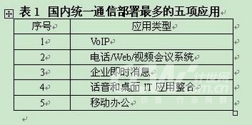 “在統(tǒng)一通信包括的20多項(xiàng)應(yīng)用中,目前部署最多的應(yīng)用包括VoIP、話音和桌面IT應(yīng)用整合、企業(yè)即時(shí)消息、電話/Web/視頻會(huì)議系統(tǒng)等!北彪娊y(tǒng)一通信發(fā)言人在接受記者采訪時(shí)表示。