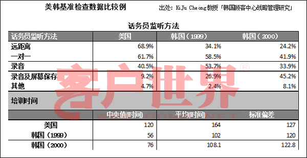 上圖是全南大學(xué)教授Ki Ju Cheong調(diào)查比較韓國(guó)和美國(guó)客服中心后的報(bào)告書(shū)的一部分。Ki Ju Cheong教授自稱(chēng)是因分析客服中心標(biāo)準(zhǔn)指數(shù)聞名于世的美國(guó)Purdue大學(xué)安東博士的學(xué)生。通過(guò)這個(gè)圖表可以簡(jiǎn)單看出韓國(guó)客服中心經(jīng)營(yíng)的改善狀況。