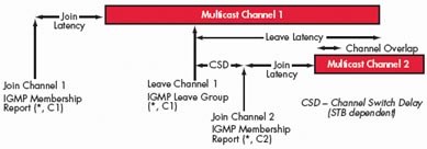 頻道切換時間的快慢直接影響用戶對IPTV業(yè)務的體驗質(zhì)量(QoE)。所以對IPTV網(wǎng)絡中處理IGMP請求報文的設(shè)備,比如邊緣組播交換機、IP DSLAM或者組播路由器的組播復制與處理能力測試就顯的尤其重要。IXIA在測試頻道切換時間方面具有顯著特點: