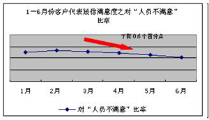 短信滿意度作為實時的客戶服務(wù)評價手段,“非常滿意”指標體現(xiàn)出在服務(wù)過程中一線客戶代表與客戶溝通的愉悅度、忠誠度。隨著“非常滿意”及“對人員不滿意”滿意度指標的改善,一定程度上說明一線客戶代表的服務(wù)狀態(tài)得到了有效的改善。