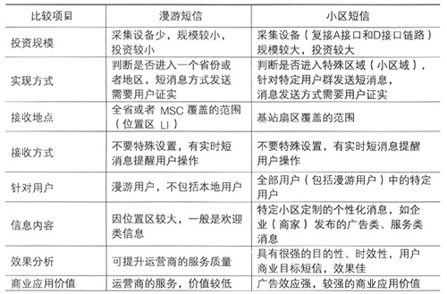 表1 漫游短信和小區(qū)短信系統(tǒng)的比較