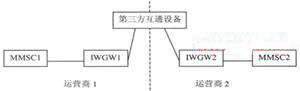 為實(shí)現(xiàn)不同運(yùn)營(yíng)商的用戶之間相互發(fā)送和接收多媒體消息,需要在不同運(yùn)營(yíng)商的多媒體消息中心之間實(shí)現(xiàn)互通。該互通需要多媒體消息中心(MMSC)與互通設(shè)備(IWGW)的連接、IWGW之間的連接實(shí)現(xiàn)。當(dāng)一個(gè)運(yùn)營(yíng)商的網(wǎng)絡(luò)用戶向另一個(gè)運(yùn)營(yíng)商的網(wǎng)絡(luò)用戶發(fā)送多媒體消息時(shí),該多媒體消息經(jīng)發(fā)送方用戶歸屬的MMSC通過(guò)IWGW提交給接收方用戶歸屬的多媒體消息中心,由接收方用戶歸屬的MMSC向其網(wǎng)內(nèi)用戶發(fā)送。網(wǎng)間多媒體消息業(yè)務(wù)互通網(wǎng)絡(luò)結(jié)構(gòu)中主要包括多媒體消息中心(MMSC),互通設(shè)備(IWGW)以及相關(guān)的輔助設(shè)備等。IWGW是指不同運(yùn)營(yíng)商網(wǎng)絡(luò)之間的多媒體消息互通設(shè)備。網(wǎng)間多媒體消息互通設(shè)備間的互聯(lián)可以由兩個(gè)運(yùn)營(yíng)商的IWGW直接連接,也可以經(jīng)過(guò)第三方互通設(shè)備轉(zhuǎn)接(見(jiàn)圖1、圖2)。