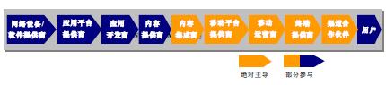 和記電訊是香港最大的流動網(wǎng)絡(luò)運(yùn)營商。2004年1月,和記電訊率先在香港推出世界級的3G服務(wù)。其目標(biāo)就是成為最佳的3G移動通信多媒體通信運(yùn)營商。和記電訊在產(chǎn)業(yè)鏈上承擔(dān)的角色如圖3所示。