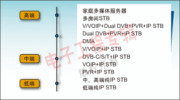 標(biāo)清(SD)對(duì)于大眾市場來說是一個(gè)合乎邏輯的選擇。ODM廠商不管選用哪種操作系統(tǒng)(Windows CE或Linux)都能與NXP公司的IP-STB平臺(tái)相結(jié)合,為本地市場生產(chǎn)所期望的產(chǎn)品。