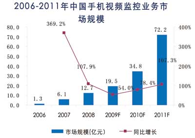 由此估算出2009年,中國手機(jī)監(jiān)控市場規(guī)模將達(dá)到19.5億元,2011年,中國手機(jī)監(jiān)控業(yè)務(wù)市場規(guī)模將達(dá)到72.2億元。