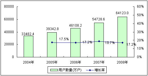 中國移動通信產(chǎn)業(yè)發(fā)展可以追溯到1987年,當時中國確定了以TACS制式作為模擬制式蜂窩移動電話的標準,首次為中國移動通信技術(shù)產(chǎn)業(yè)化發(fā)展奠定了基礎(chǔ)。隨著通信技術(shù)的進步,數(shù)字化的GSM移動通信網(wǎng)絡(luò)制式快速取代了原有的TACS制式。進入2000年以后,伴隨中國改革開放的深入和經(jīng)濟的進一步轉(zhuǎn)型,移動通信技術(shù)得到迅猛發(fā)展,手機普及率得到迅速提高。2004~2008年,中國移動電話用戶數(shù)量每年都保持著17%以上的快速增長,截止到2008年底,中國移動電話用戶數(shù)量已經(jīng)達到6.41億戶,與2004年相比增長了近一倍。