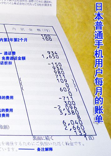 到底在購(gòu)買各種套餐之后,用戶每個(gè)月使用多少錢呢?下面是一份普通的日本手機(jī)用戶每個(gè)月收到的賬單,通過(guò)這份賬單我們清晰看出3G資費(fèi)的構(gòu)成。在這里,我們清晰看到?jīng)]有漫游費(fèi),如果沒(méi)有折扣,該用戶至少需要付近3萬(wàn)日元的費(fèi)用,實(shí)際上,最后用戶需要繳納的費(fèi)用是6064日元,其中還包含了購(gòu)買新款手機(jī)3380日元的費(fèi)用,實(shí)際上產(chǎn)生的話費(fèi)是2660日元。