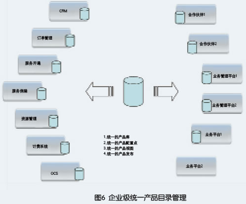 其次建立統(tǒng)一產(chǎn)品目錄,先完成對CRM、計費系統(tǒng)的產(chǎn)品目錄統(tǒng)一管理,實現(xiàn)新產(chǎn)品的單點配置、統(tǒng)一發(fā)布。