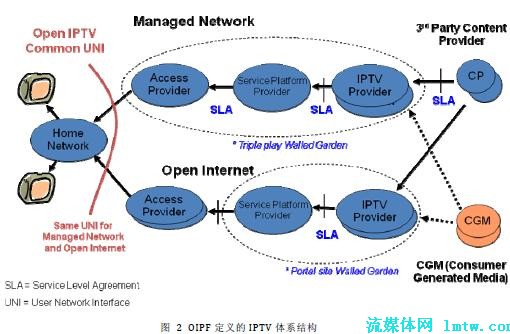 系統(tǒng)能夠進(jìn)入大規(guī)模市場應(yīng)用。其“開放性”表現(xiàn)為標(biāo)準(zhǔn)和規(guī)范的開放性以及組織成員的開放性(對任何工業(yè)團(tuán)體開放)。作者預(yù)見不久的將來會(huì)有廣電運(yùn)營商采用OIPF