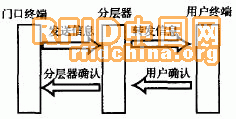 由門口終端發(fā)送一幀信息給分層器,分層器接收到以后,被呼叫的分層器將信息分發(fā)給本層所有的用戶終端,并等待用戶終端的確認。被呼叫的用戶終端收到信息后,立即發(fā)送確認信息給分層器,分層器收到以后,給門口終端發(fā)送確認信息。門口終端收到分層器的確認后,打開攝像頭和音頻麥克風,此時雙方可以進行對話。