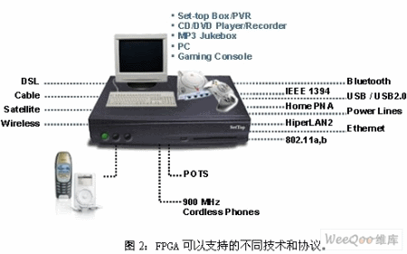 多年來,低成本FPGA器件已經(jīng)成為機頂盒和視頻網(wǎng)關(guān)的關(guān)鍵器件,可提供視頻增強、丟失像素替換、視頻轉(zhuǎn)換、產(chǎn)品靈活性以及產(chǎn)品差異等功能。此外,這些器件還允許生產(chǎn)商方便地支持不同的技術(shù)和協(xié)議,如圖2所示。