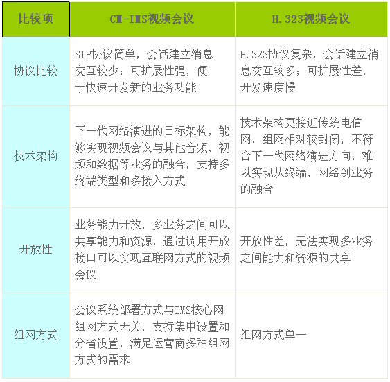 IMS是下一代網(wǎng)絡演進的核心技術,基于中國移動CM-IMS的視頻會議在全面支持語音、視頻、數(shù)據(jù)會議和高清會議功能的同時,有效解決了傳統(tǒng)H.323會議系統(tǒng)互通性差、終端要求高、業(yè)務可擴展性低等問題,成為中國移動視頻會議發(fā)展的主流技術。CM-IMS的視頻會議與傳統(tǒng)的H.323會議相比,具有以下技術優(yōu)勢: