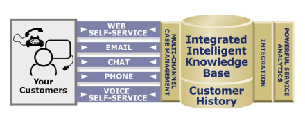 Technologies”是一家非常著名的多接觸點呼叫中心供應商,這家公司建議采用“通用事故”追蹤機制,它強調(diào)報表和歷史紀錄必須作為任何一個多接觸點聯(lián)絡中心不可或缺的組成部分。“Rightnow”提供的以下插圖很清楚地向我們展示了多渠道知識庫集成是如何被強制執(zhí)行的。