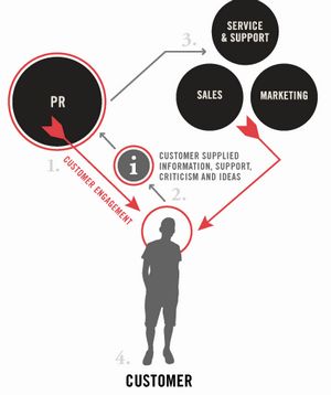 社會(huì)化CRM賦予了企業(yè)公關(guān)部門(mén)更重要的角色,通過(guò)公關(guān)部分與消費(fèi)者更多的互動(dòng),從中獲取消費(fèi)者的反饋信息、褒貶意見(jiàn)、新想法新創(chuàng)意。之后再通過(guò)銷(xiāo)售、市場(chǎng)推廣以及產(chǎn)品服務(wù)等措施來(lái)吸引更多目標(biāo)消費(fèi)群,并用公關(guān)活動(dòng)來(lái)進(jìn)一步推廣。