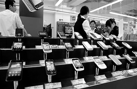 消費(fèi)者在剛剛開(kāi)業(yè)的福州樂(lè)購(gòu)家電區(qū)選購(gòu)手機(jī),智能手機(jī)系統(tǒng)和軟件的發(fā)展,正在成為移動(dòng)互聯(lián)網(wǎng)發(fā)展的“助推器”