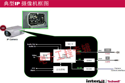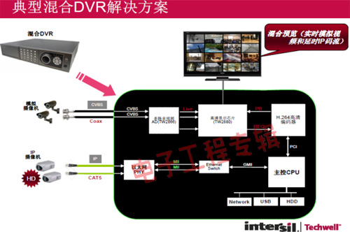 革命性的Intersil Techwell SLOCTM(Security Link over Coax)同軸電纜復(fù)合視頻傳輸解決方案是可通過一條同軸電纜同時(shí)傳輸模擬 CVBS 視頻和高清數(shù)字 IP 視頻信號的先進(jìn)調(diào)制解調(diào)器解決方案,其采用最新MODEM PHY技術(shù)的傳輸解決方案,可以基于同軸電纜同時(shí)傳輸高清IP碼流和標(biāo)清模擬實(shí)時(shí)視頻。