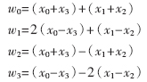 對(duì)于每列變換,需要進(jìn)行8次加法和2次移位運(yùn)算,而行變換則可根據(jù)矩陣轉(zhuǎn)置的性質(zhì)ABT=(BAT)T,將經(jīng)過(guò)列變換后的結(jié)果矩陣先進(jìn)行轉(zhuǎn)置,再采用相同的變換形式運(yùn)算。這樣對(duì)4×4點(diǎn)數(shù)據(jù)做一次變換,只需通過(guò)8×8次加法和2×8次移位運(yùn)算便可完成。